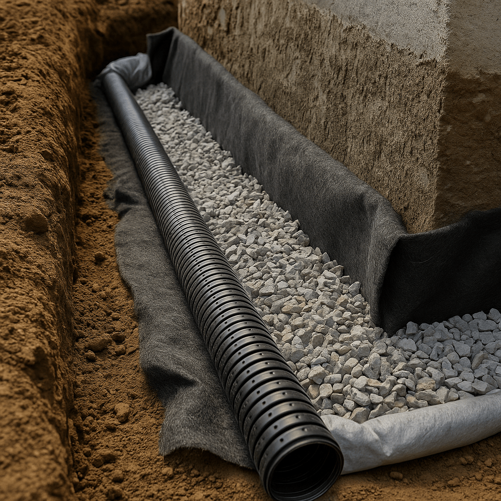 Drenaj hattı, yalıtım kaçakları oluştuğunda suyun tahliyesini sağlar ve uygulama sırasında kuru zemin ortamı oluşturur. Ancak drenaj, yalıtımın alternatifi değildir, sadece destekleyici bir sistemdir.